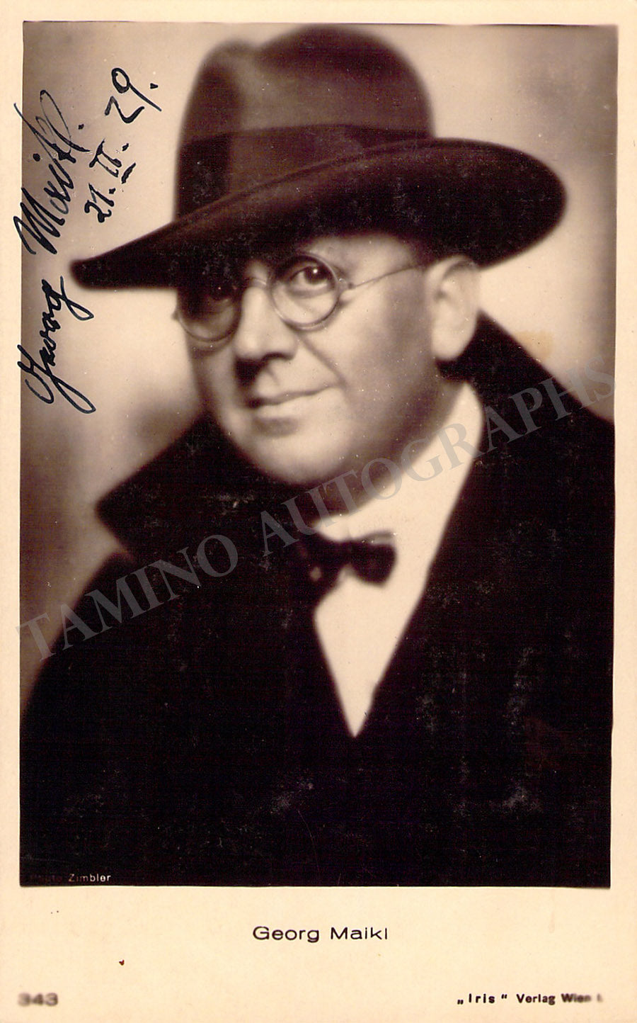 Signed postcard photograph, shown as himself, dated in 1929. Photograph by Iris, Vienna. Size is 3.25 x 5.25 inches, in excellent condition.