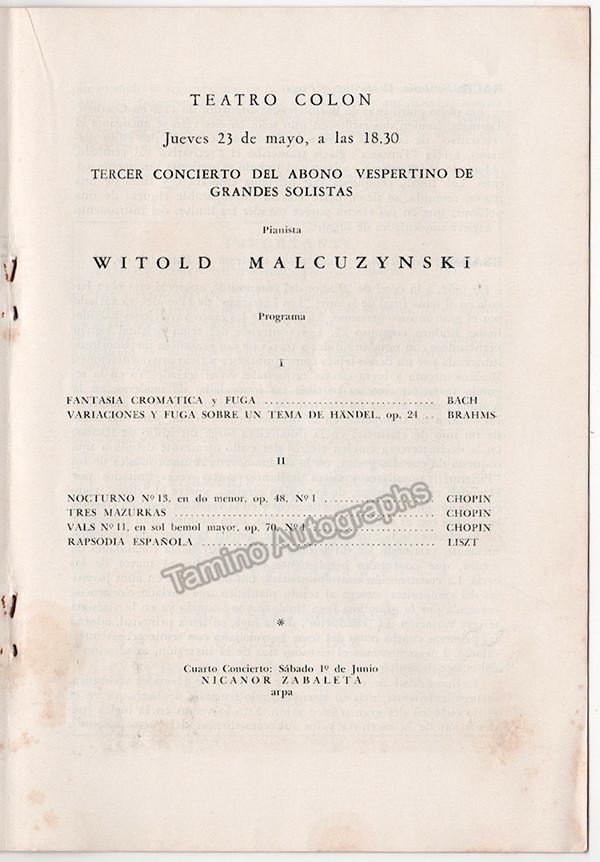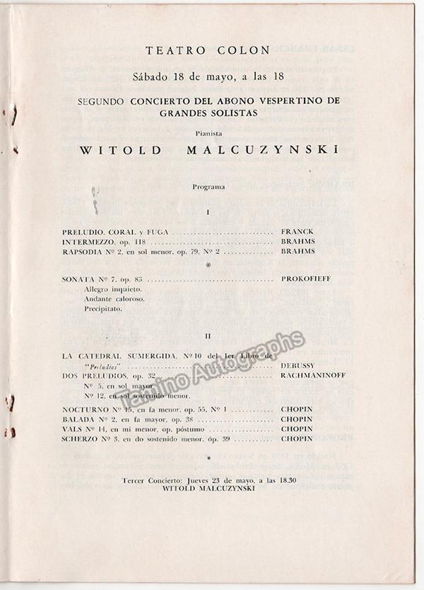 Malcuzynski, Witold - 4 Concert Programs - Teatro Colon, Buenos Aires,