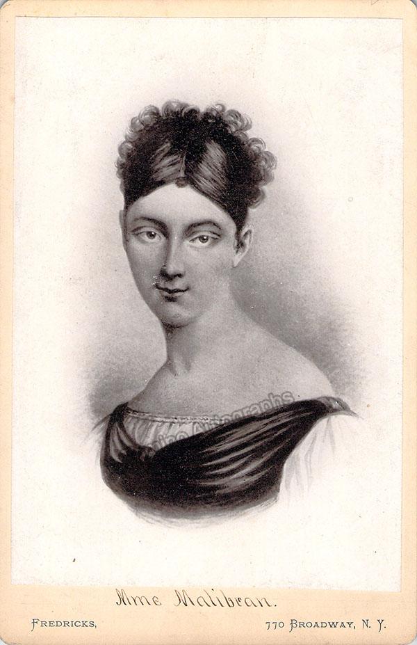 Star Spanish soprano/mezzo-soprano (1808-1836), considered one of the greatest singers of the 19th century. Unsigned cabinet photo by Fredricks, New York. Size is 4.25 x 6.5 inches, beautiful item in excellent condition.