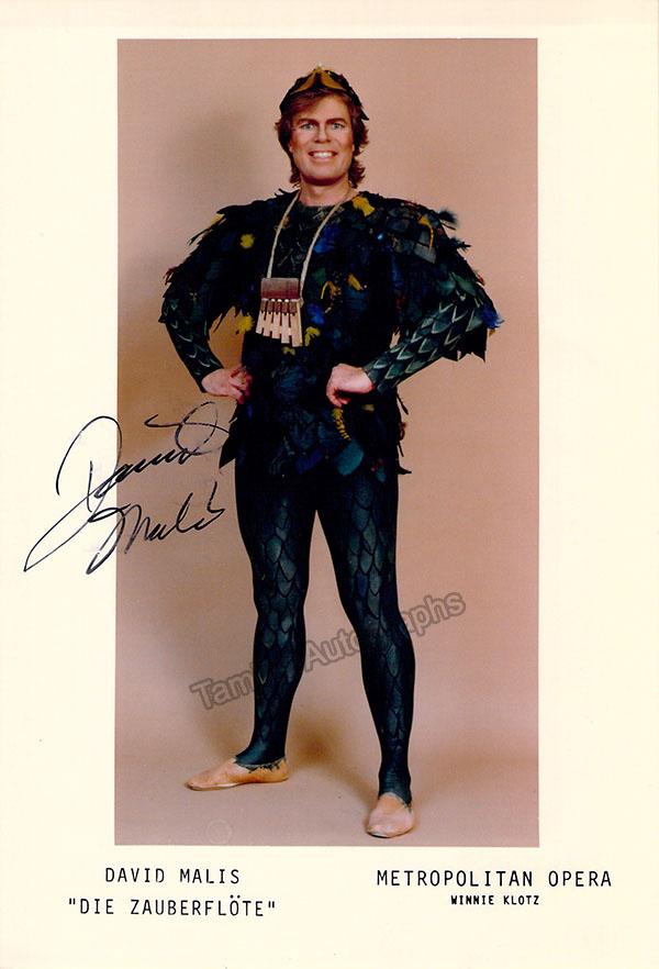 American baritone (b.1957), signed photo, shown as Papageno in Mozart's Die Zauberflöte at the Metropolitan Opera. Photo by Winnie Klotz. Size is  5 x 7.25 inches, in excellent condition.