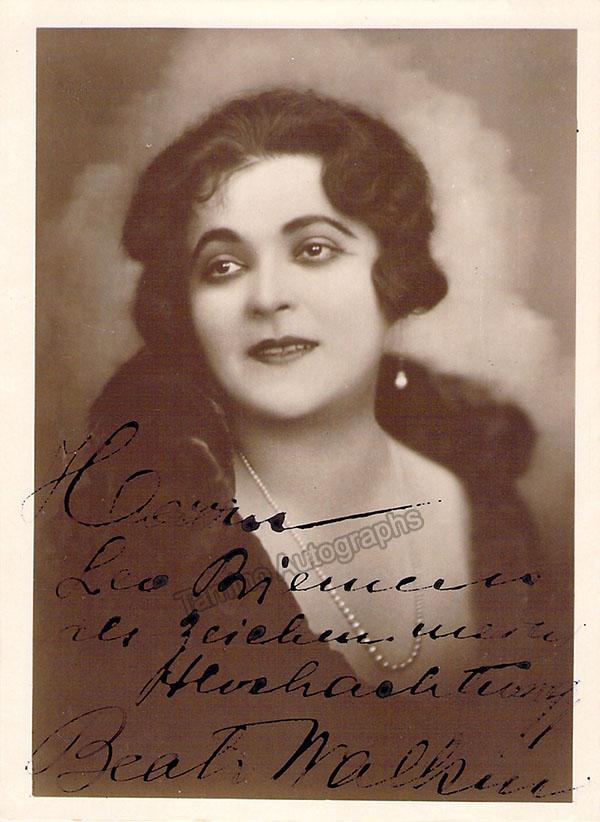 Ukrainian soprano (1892-1973), signed photo postcard, shown as herself. Signed and inscribed to Leo Riemens on front with additional text and signature on verso. Size 3.5 x 4.75 inches, in excellent condition.