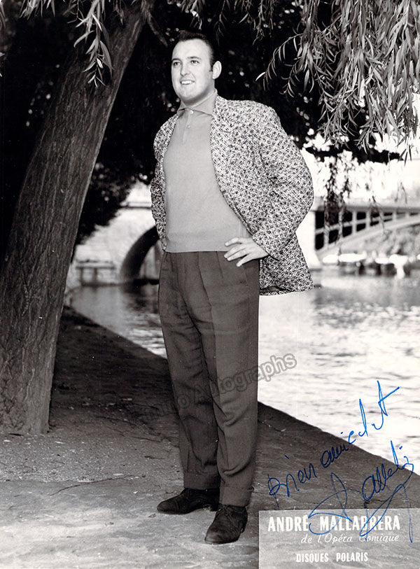 French tenor (1934-2017), signed photograph, shown as himself. Stamped on verso by Rucis photographers, Rueil-Malmaison. Size is 7 x 9.5 inches, in excellent condition.