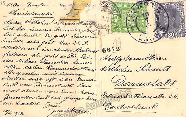 Ukrainian tenor (1883-1921), 2 signed postcards, one including image of him as Don Jose in Bizet's Carmen, dated in 1921, the other is dated in 1918. Both written in German, sold untranslated. Size of each is 3.5 x 5.5 inches, in excellent condition. Not sold separately.