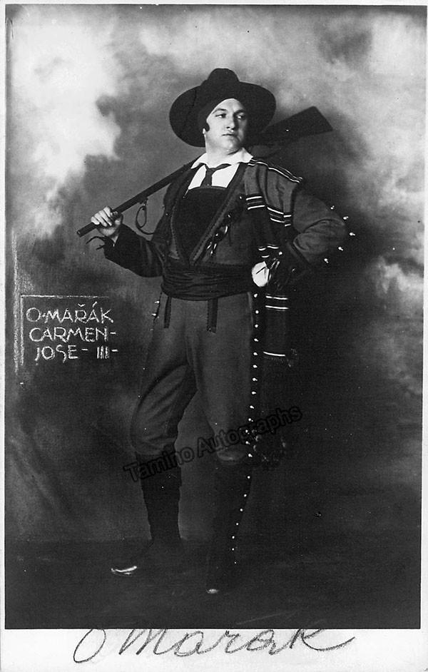 Czech tenor (1872-1939), signed photo postcard, shown as Don Jose in Carmen. Size is 3.5 x 5.5 inches, in excellent condition.