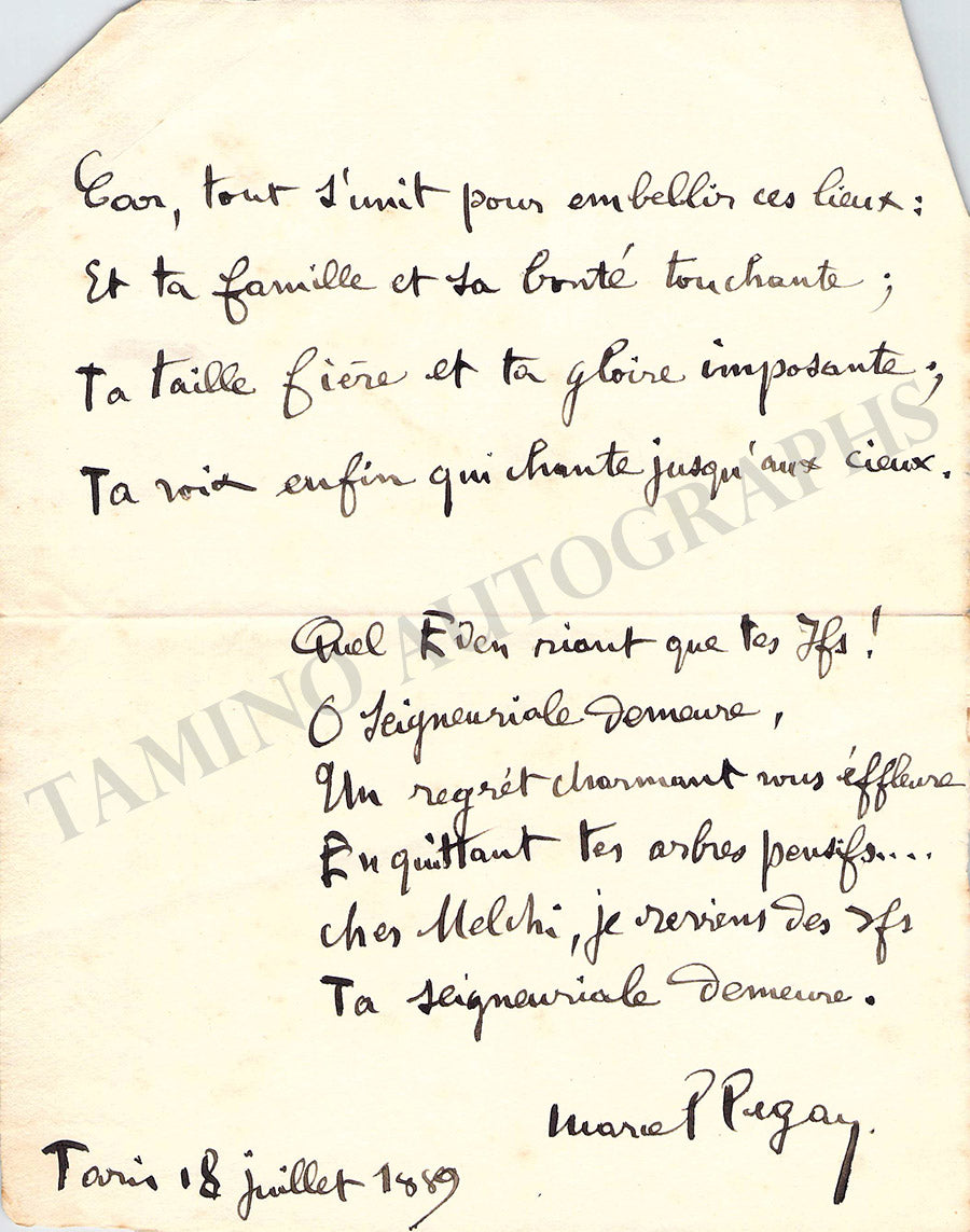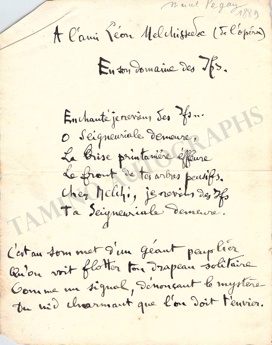 Legay, Marcel - Autograph Poem 1889 Legay, Marcel - Autograph Poem 1889