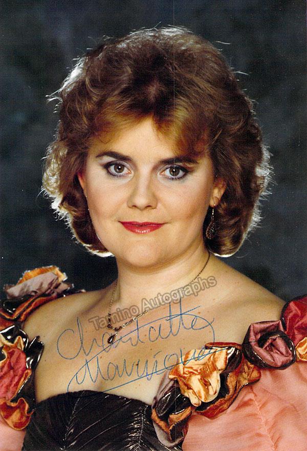 Dutch soprano (b. 1955), signed photo, shown as herself. Beautiful image and costume with clear signature. Photo by Martin Paternotte. Size is 4 x 5.75 inches, in excellent condition.