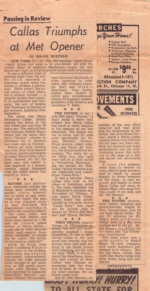 ALSO INCLUDED is the envelope, also written by Meneghini, and a newspaper clip about her successful performance at the Met Opening, and her meeting with Marlene Dietrich. See scans.