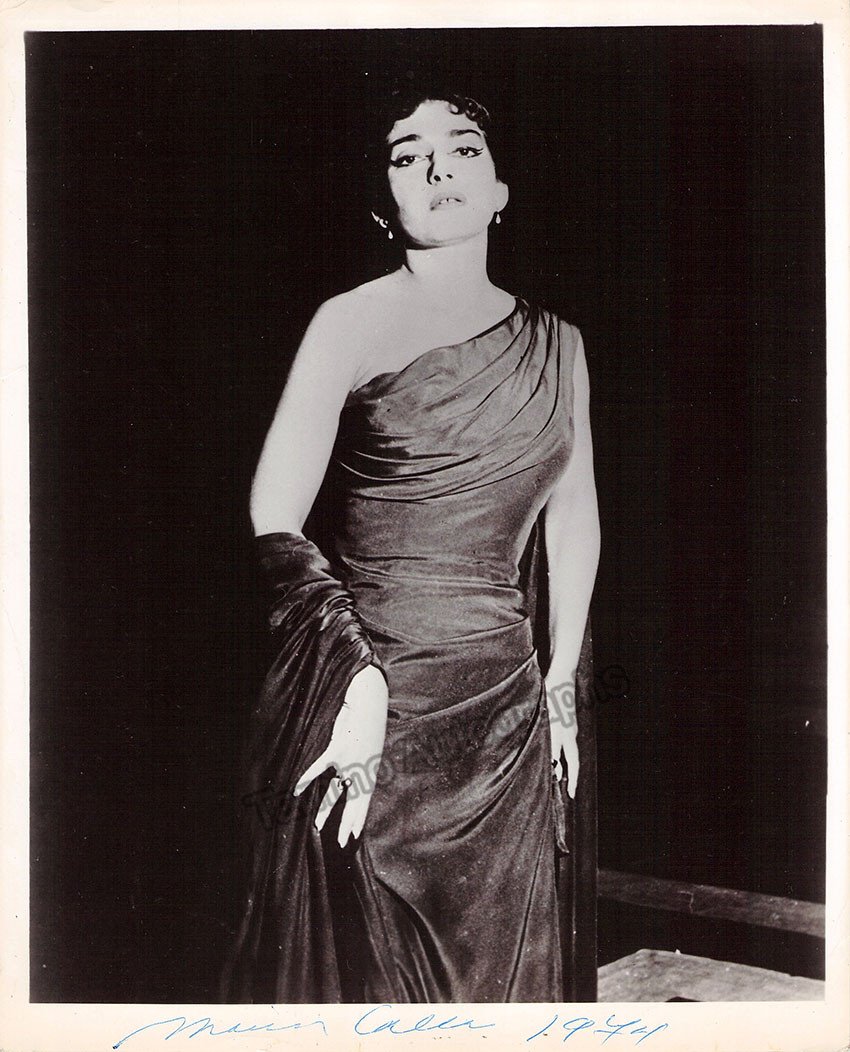 Star Greek-American soprano (1923-1977), signed photo, shown in the title role in Gluck´s opera "Alceste", in Paris. Signed by her on the lower white margin and dated in 1974. Size is 8 x 10 inches, in excellent condition. An autograph of Callas on a rather rarely seen role.