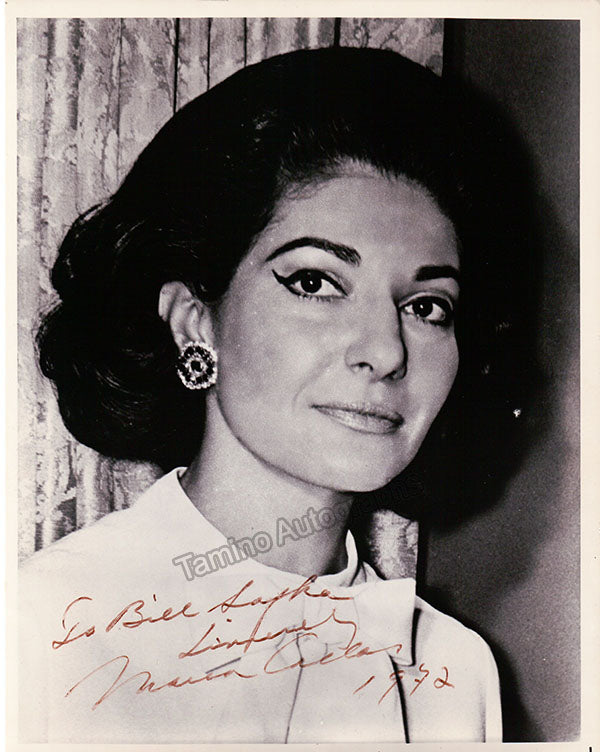 Inscribed to the late autograph dealer and opera fan William (Bill) Safka, size is 8 x 10 inches, in excellent condition.