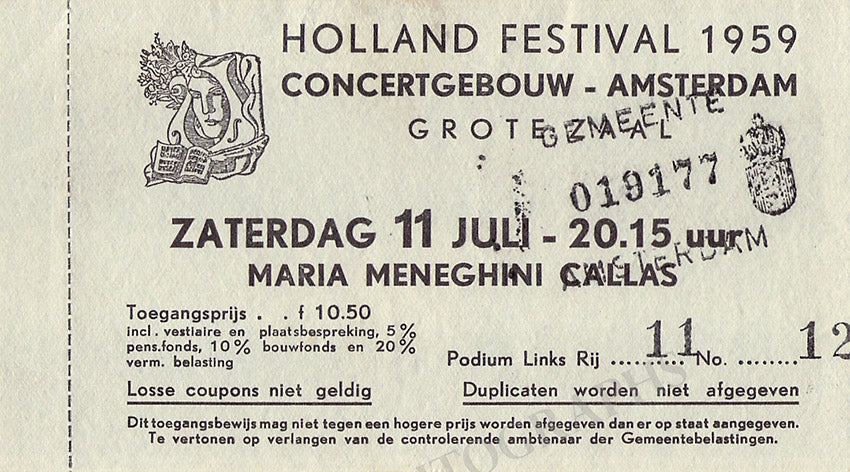 Maria Callas autograph Signed Program Amsterdam 1959