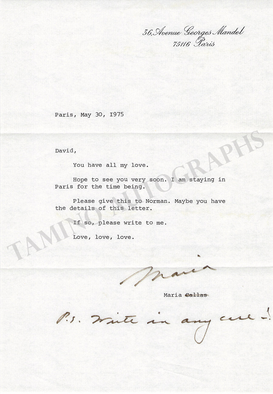 Callas, Maria - Typed Letter Signed 1975 Callas, Maria - Typed Letter Signed 1975 Callas, Maria - Typed Letter Signed 1975