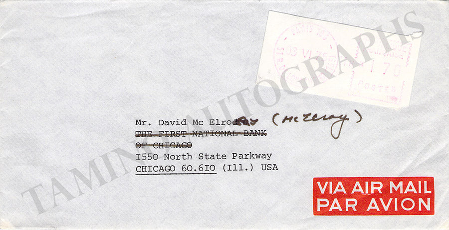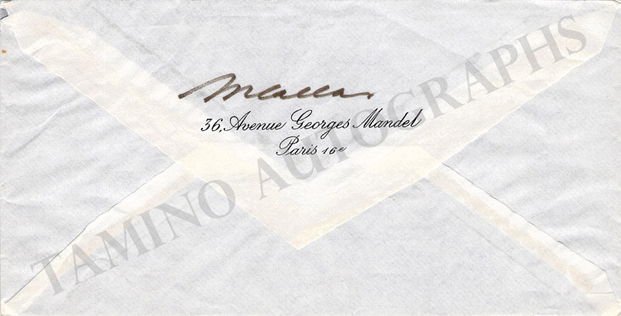 Fine typed letter signed by her as simply "Maria" and dated May 30, 1975, addressed to her friend David McElroy, with a short greeting. Size is 6.25 x 9 inches, 1 page, in excellent condition.