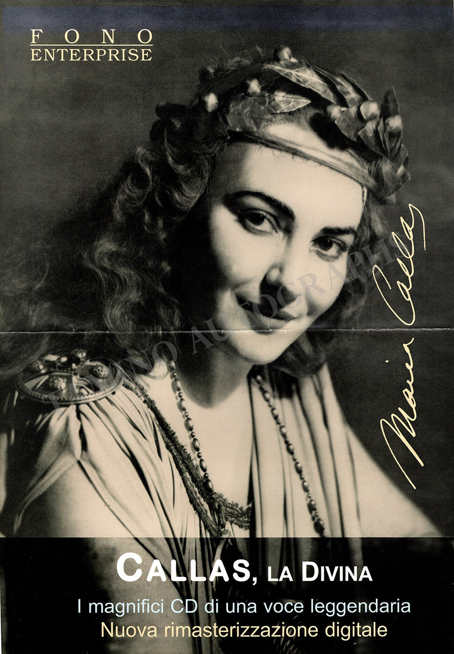 Nice poster of the Greek soprano shown very young as Norma with a facsimile signature promoting the early recordings of the diva for that record label.