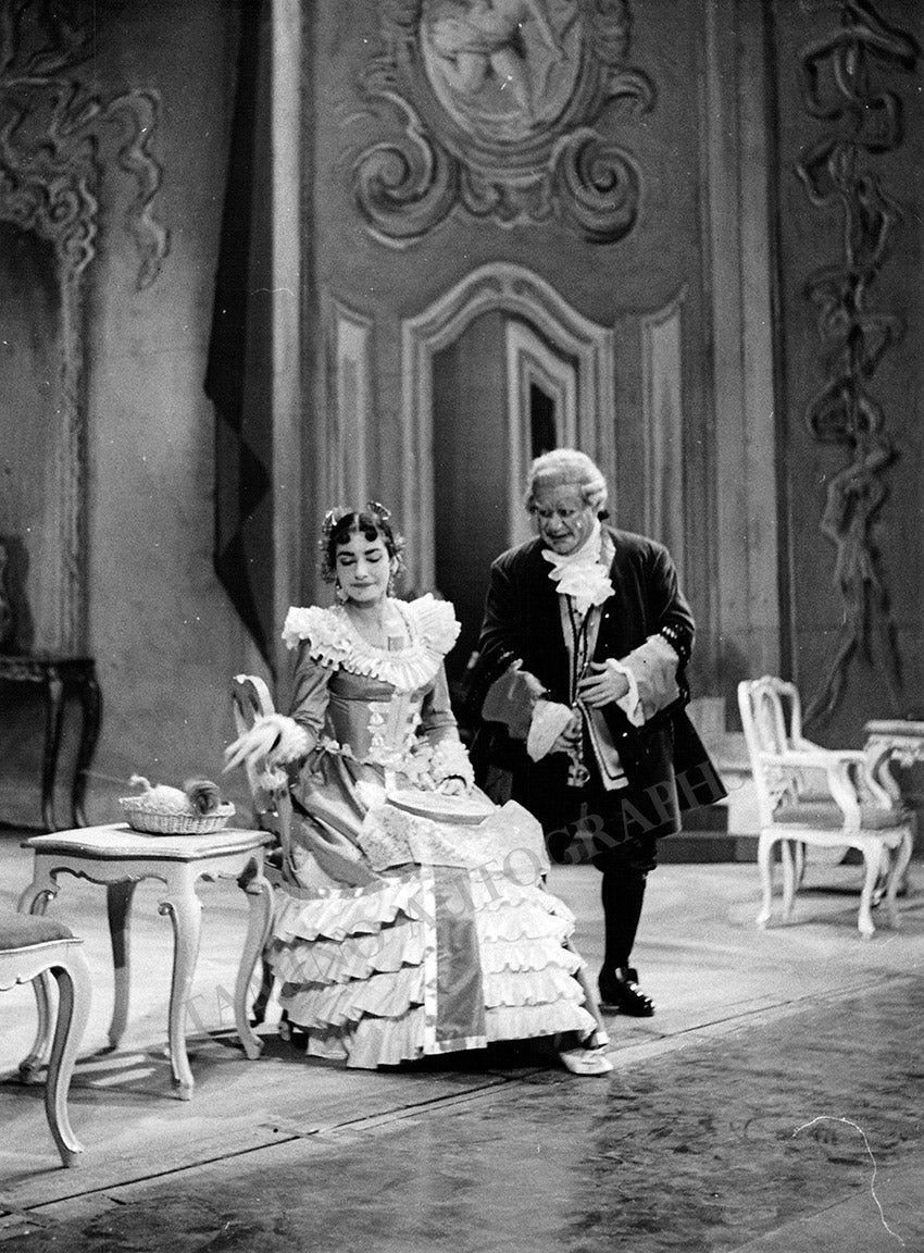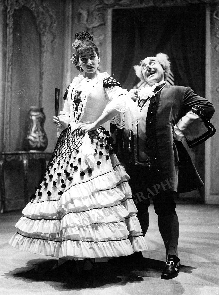 Gorgeous, unsigned photographs of the Greek-American Diva as Rosina in Rossini's opera Il Barbiere di Siviglia, a role she only sang for the 1956 production at Teatro La Scala, Milan.
