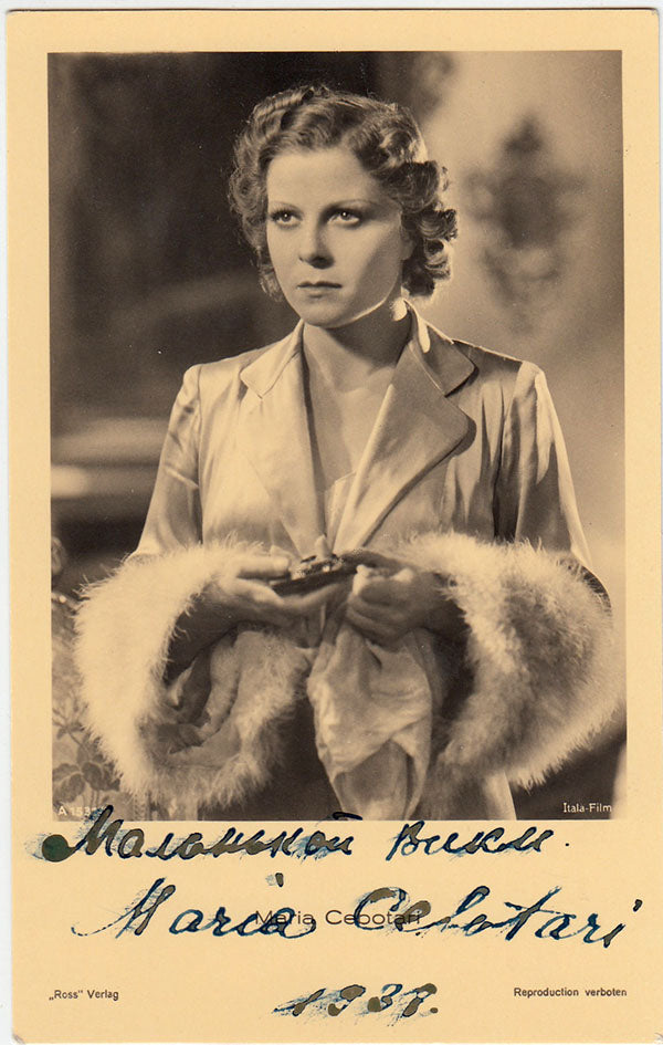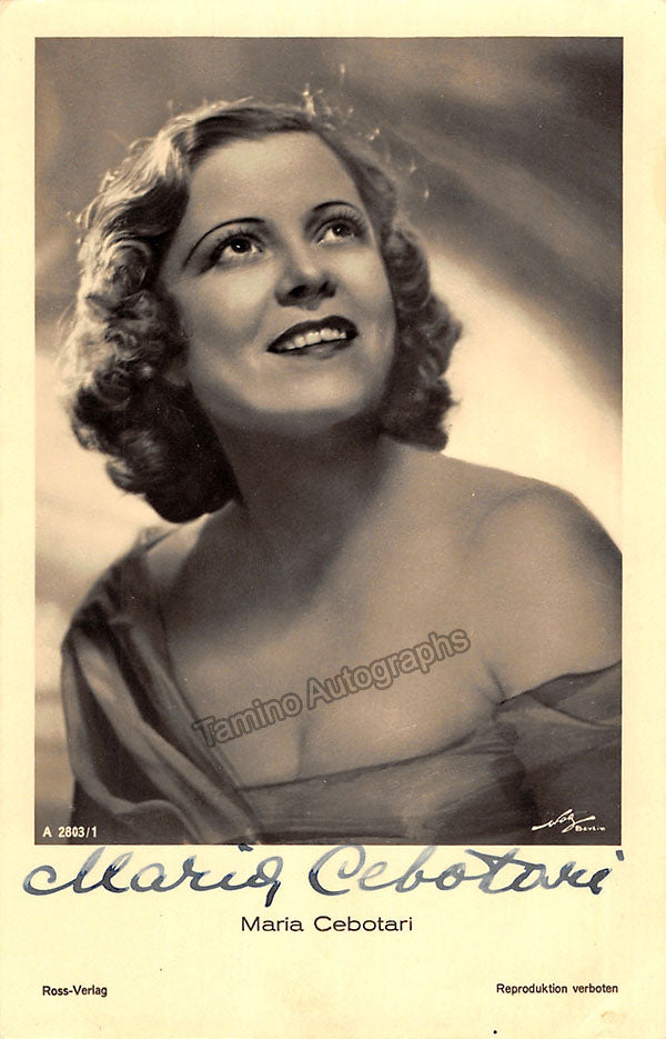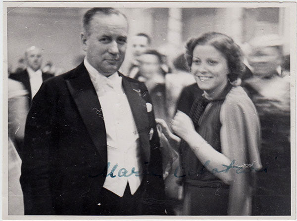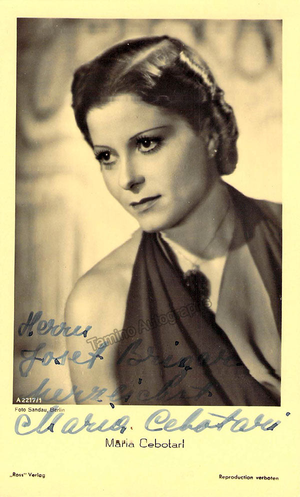 Signed publicity photograph, shown as herself. Photo by Sandau photo studio, Berlin. Size is 3.5 x 5.5 inches, some bends, otherwise in excellent condition.