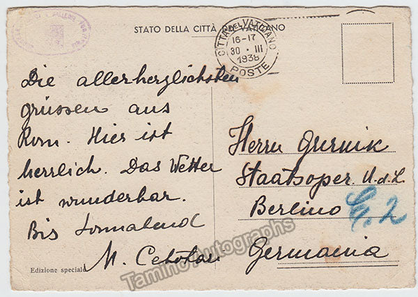 Signed postcard photograph, shown as Julia in Heinrich Sutermeister's opera Romeo und Julia, a role she performed in the opera's World Premiere Production in Dresden in 1940. Bold handwriting and signature. Photo by Berger, Dresden. Size is 3.5 x 5.5 inches, in excellent condition.