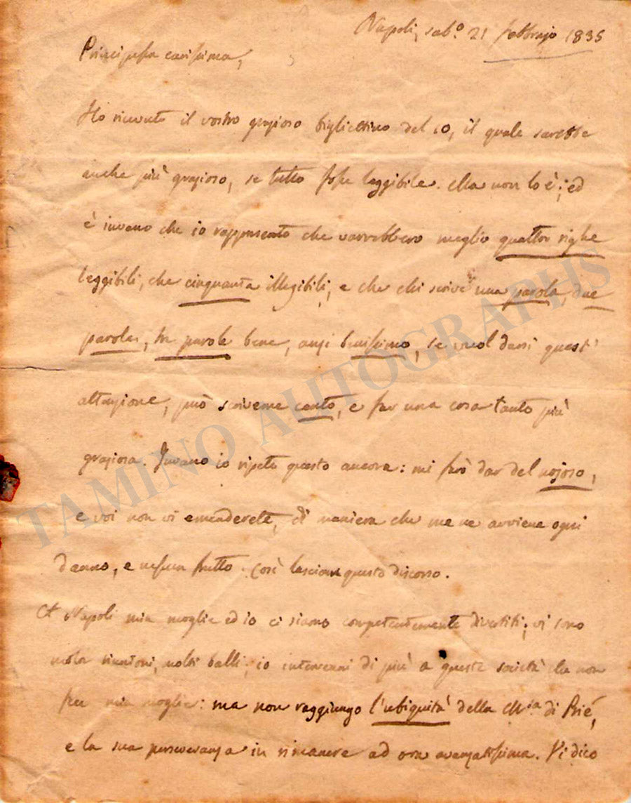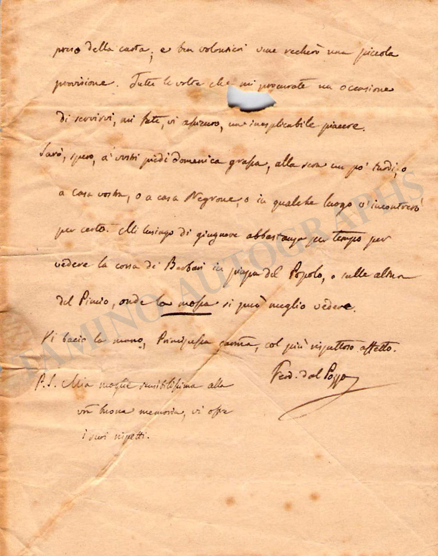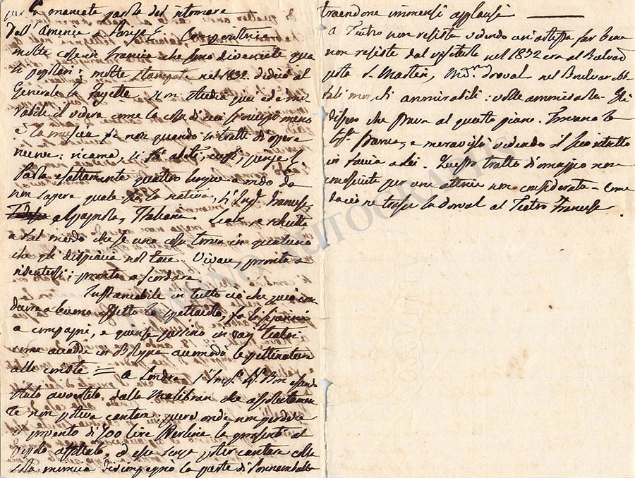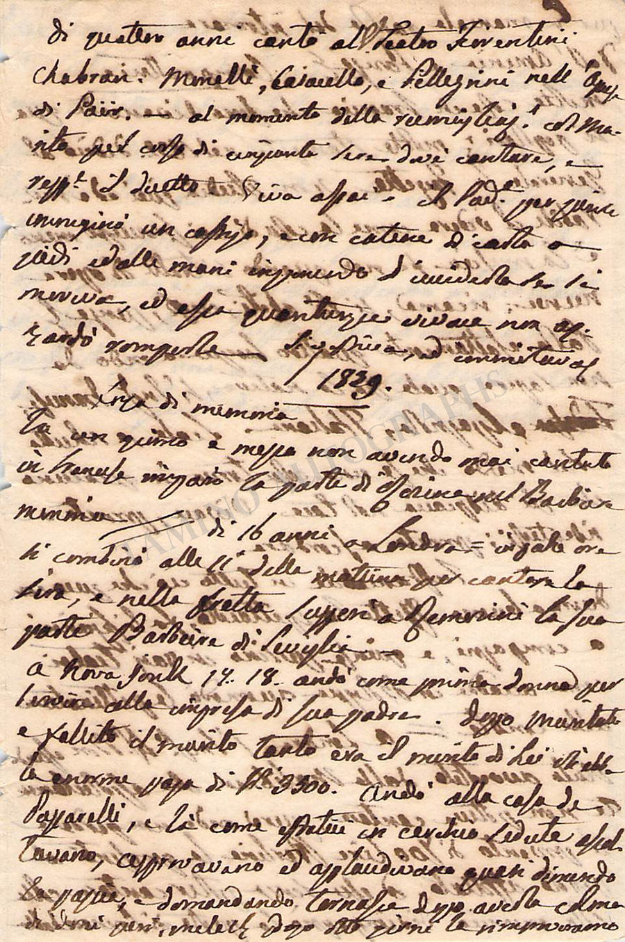 2. Dal Pozzo, F. 3-page autograph letter reporting on Malibran's injury on accident, no date.