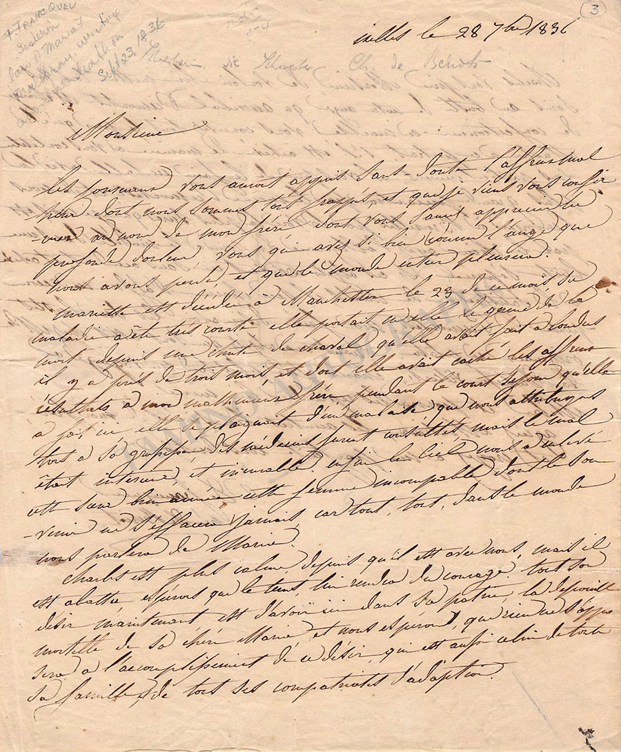 1. By Franoue, F. (Malibran's sister-in-law) dated September 1836; 2 pages long.