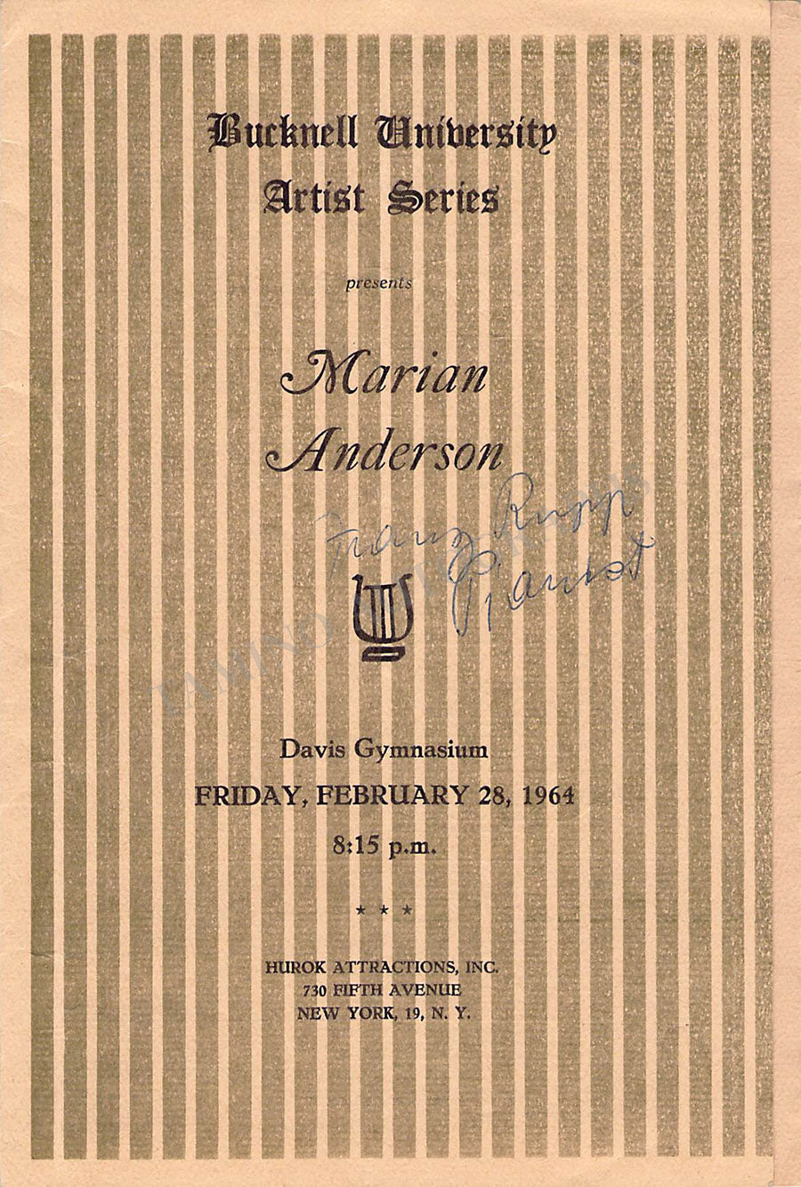 Original program for a recital of the celebrated American contralto in Lewisburg, PA, USA, in 1964; signed by her on the third page and by her pianist Franz Rupp on the cover.