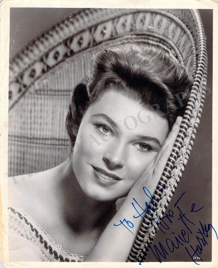 Black-and-white photograph inscribed and signed by her with a short sentiment. Size is 8.1 x 10 inches, some creases, in very good condition.