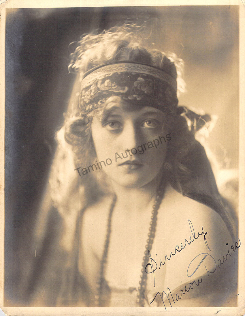 Fantastic sepia color photograph signed by her, shown young in role.  Size is 8 x 9.9 inches, minor silvering over the left border, some damages on corners, otherwise in very good condition.