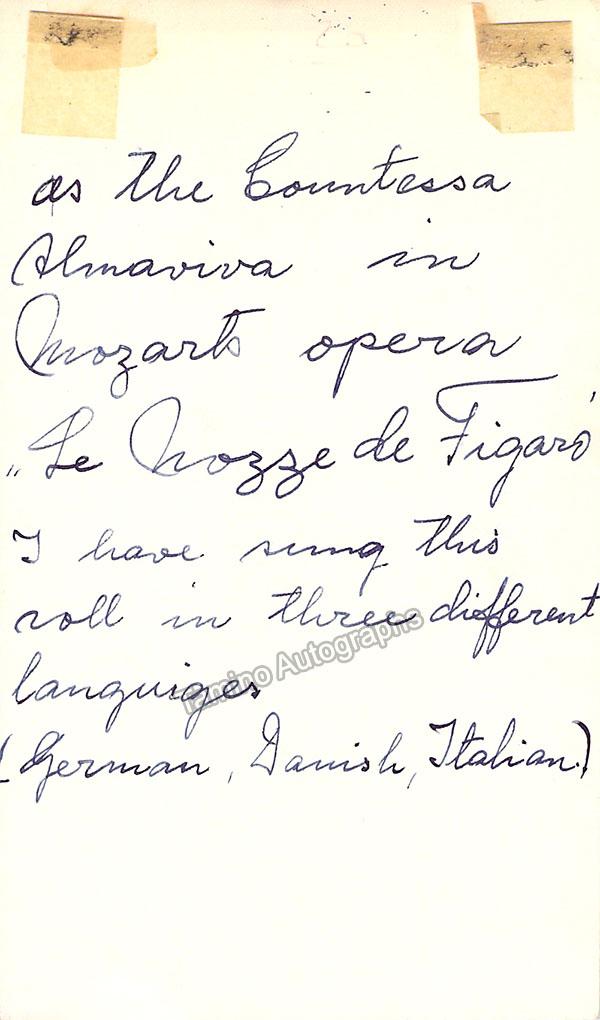 Icelandic soprano (1905-1995), signed photo, shown as the Countess in Mozart's Nozze di Figaro, inscribed and dated in 1942. More extensive inscription on verso. Very clear handwriting and signature. Size is 3.25 x 5.75 inches, in excellent condition.