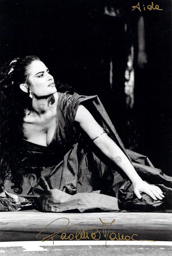 Italian soprano, signed photo, shown in title role of Verdi's Aida. Size is 4 x 6 inches, in excellent condition.