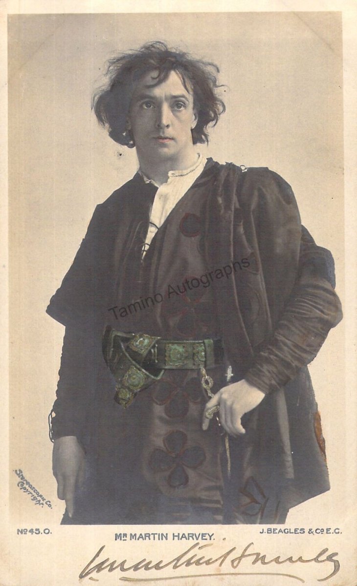 English actor (1863-1944). Beautiful colorized photo postcard signed by him, shown in role. Size is 3.4 x 5.5 inches, minor silvering, in very good condition.