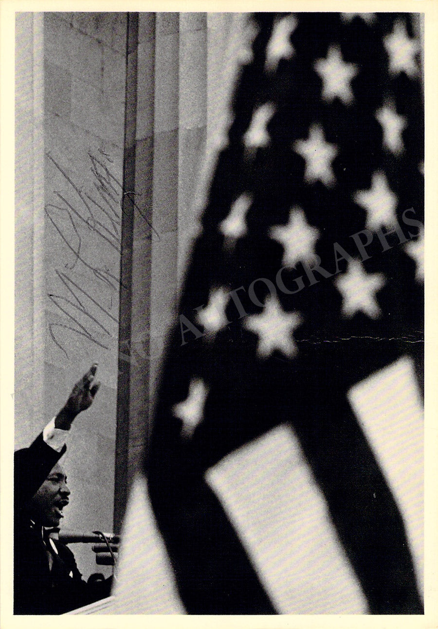 Black-and-white photo postcard of his son Martin Luther King Jr. signed by Sr. on the front and on verso (not shown). Size is 4 x 5.75 inches, in excellent condition.