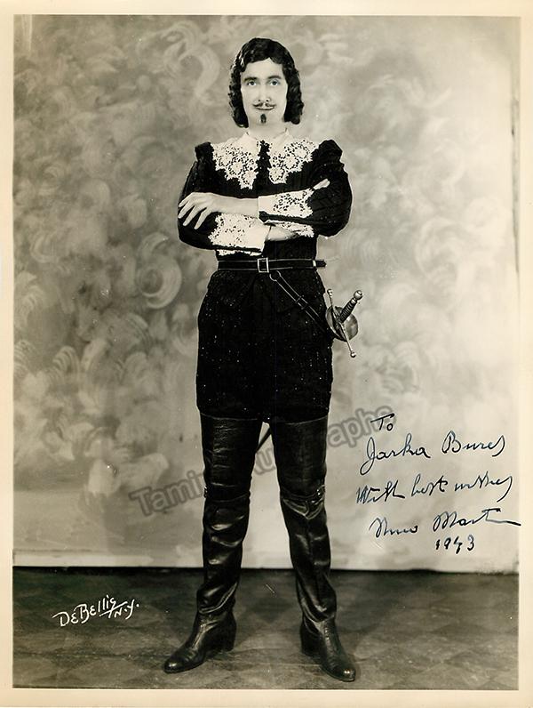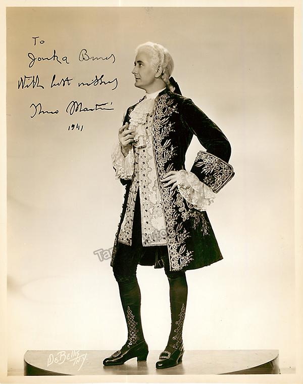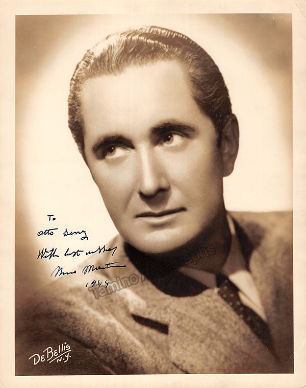 Signed photograph, shown as himself, inscribed and dated in 1944. Printed signature on front and stamped on verso by photographer De Bellis, New York. Size is 8 x 10 inches, small creases on several edges, otherwise in excellent condition.
