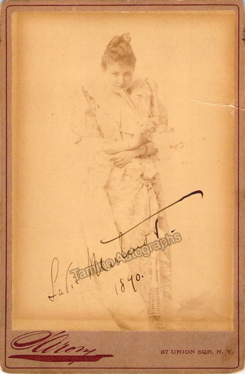 Fine cabinet photograph signed by her, dated in 1890. Size is 4.25 x 6.5 inches, crease and age toning around edges, in very good condition.