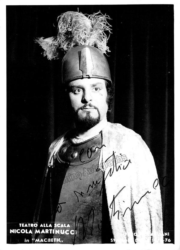 Italian tenor (b. 1941), signed photograph, shown as Macduff in Verdi's Macbeth. Stamped on verso by photographer Piccagliani, La Scala, Milan. Size is 4 x 5.75 inches, in excellent condition.