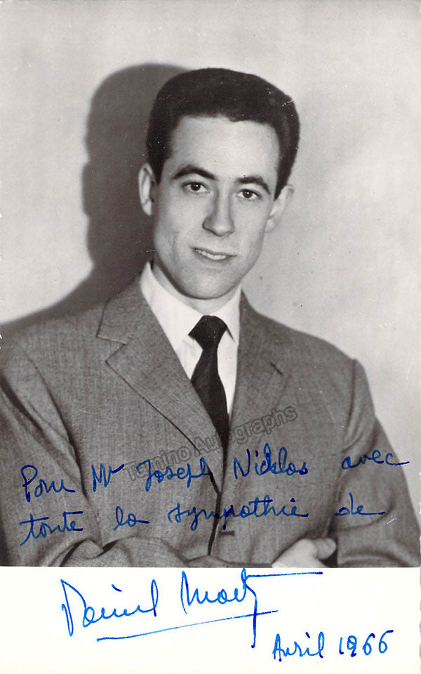 French baritone (1932-2015), signed postcard photograph, shown as himself, inscribed and dated in 1966. Photo by Binel, Rennes. Size is 3.5 x 5.5 inches, in excellent condition.