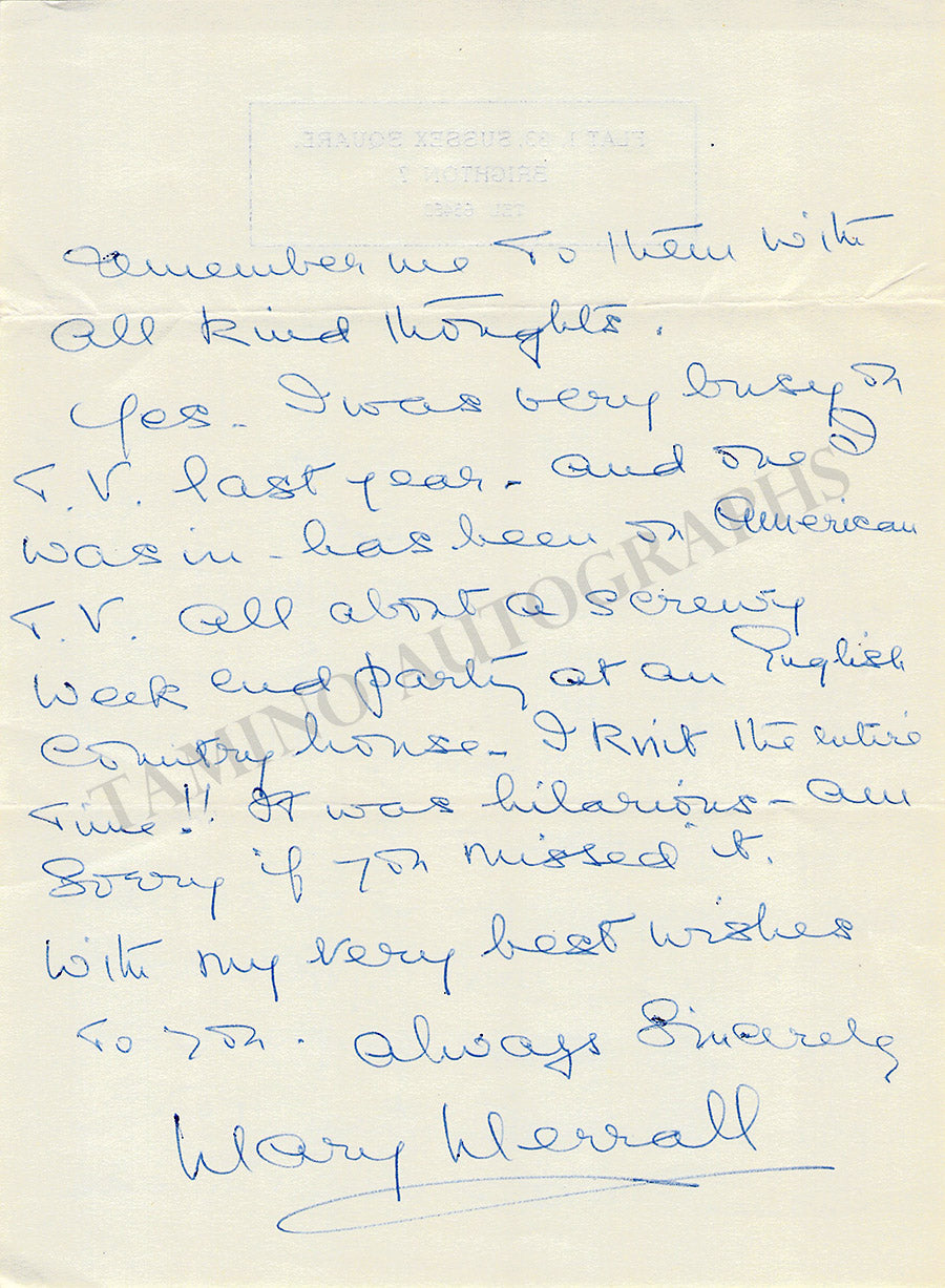 Merrall, Mary - Autograph Letter Signed 1970 Merrall, Mary - Autograph Letter Signed 1970