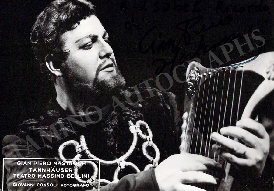 Signed photograph, shown as Wolfram in Wagner's Tannhauser, inscribed. Size is 4 x 5.75 inches, in excellent condition.