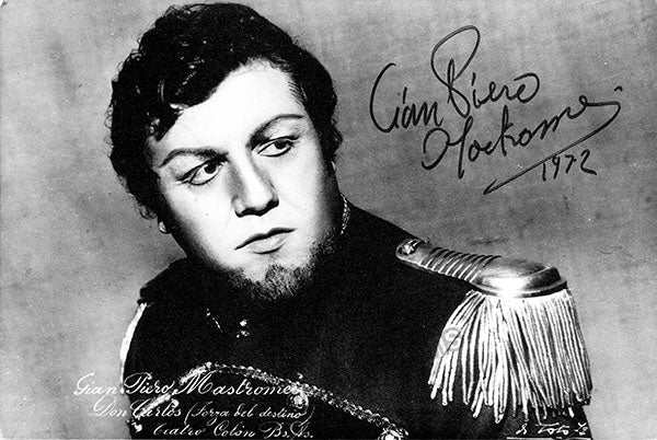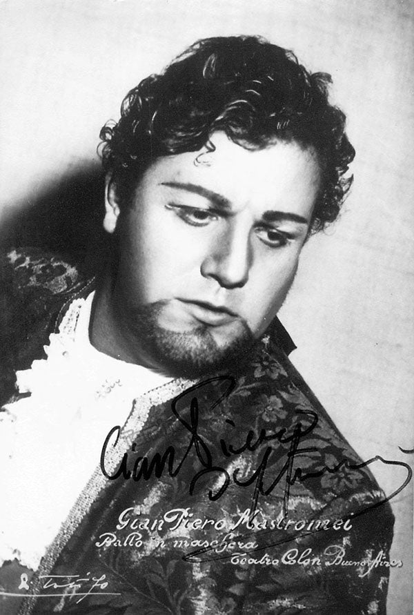Signed photograph, shown in role. Stamped on verso by Alfa Foto photographers, Teatro Colon, Buenos Aires. Size is 4 x 5.75 inches, in excellent condition.