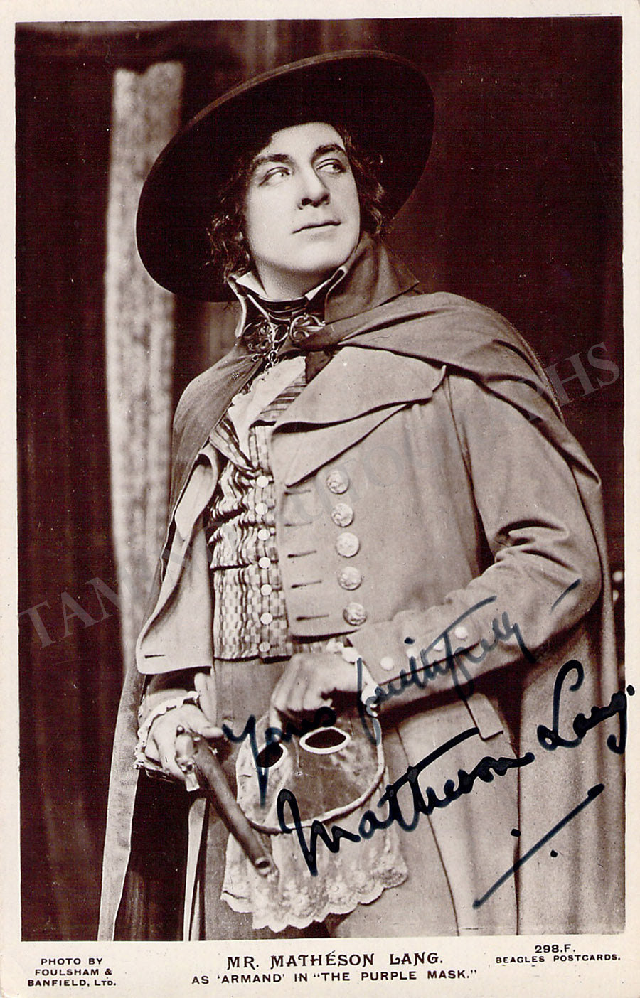 Fine black-and-white photo postcard signed by him, shown in role. Size is 3.5 x 5.4 inches, in excellent condition.