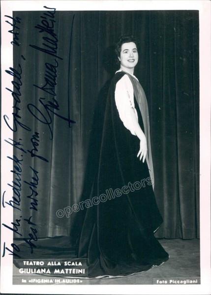Italian soprano.  Signed photo postcard  shown in Gluck's Ifigenia in Aulide, inscribed. Size is 4 x 5.75 inches, in excellent condition.
