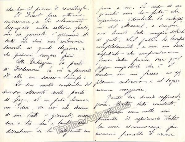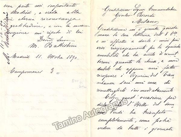 Battistini, Mattia - Autograph Letter Signed 1890 - Tamino Battistini, Mattia - Autograph Letter Signed 1890 - Tamino