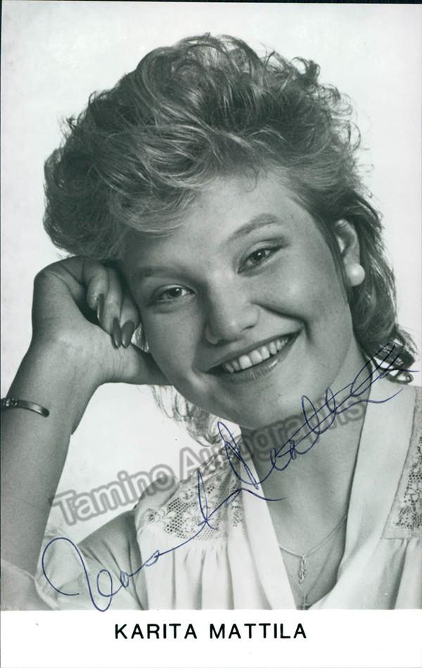 Finnish soprano (b. 1960), signed photo, shown as herself. Size is 3.5 x 5.5 inches.