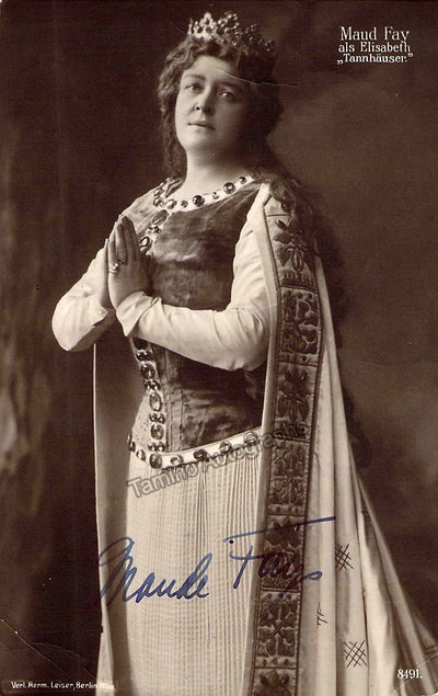 Signed postcard photograph, shown as Elisabeth in Wagner's Tannhauser. Photo by Hermann Leiser, Berlin. Size is 3.5 x 5.5 inches, small creases on corners, otherwise in excellent condition.
