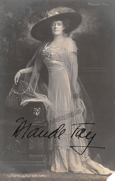 Signed photo postcard, shown as herself. Size is 3.25 x 5.25 inches, small missing piece of paper over the lower right corner, otherwise in excellent condition.