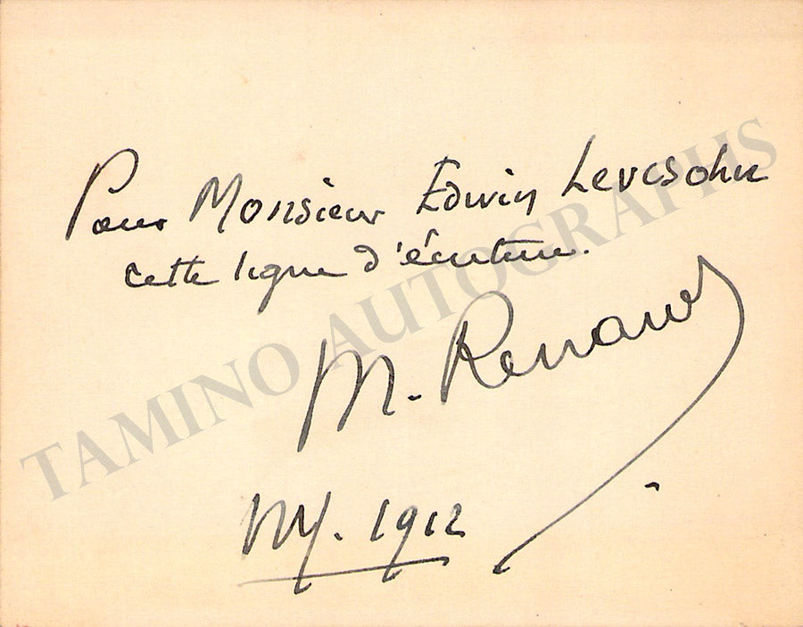 Original manuscripts signed by Renaud including letters, signature cuts, cards, and album pages. Different sizes and conditions (check individual descriptions for more details if available).