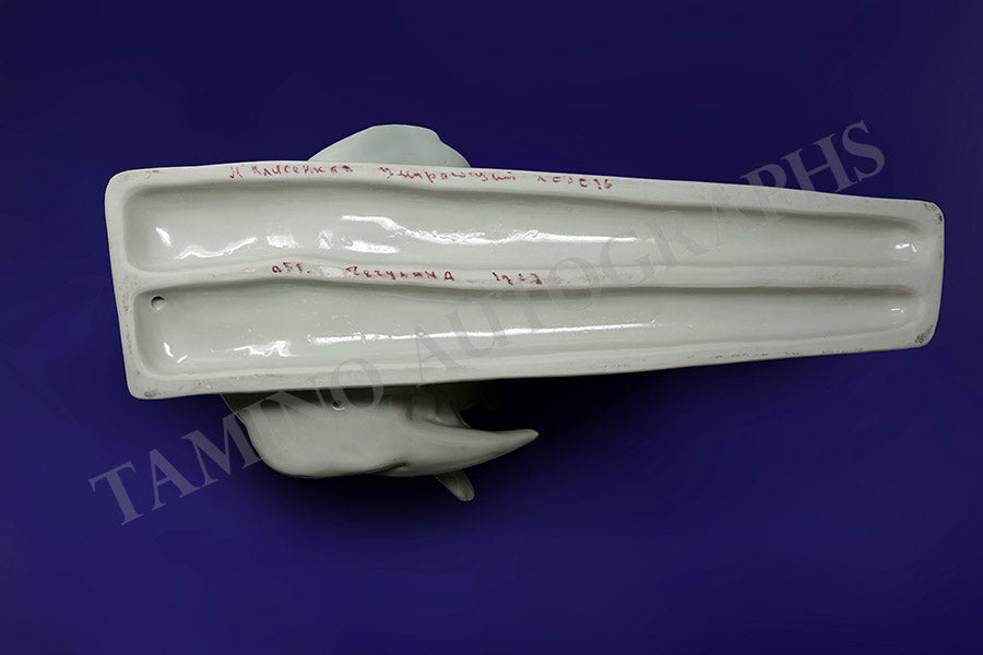 High-quality porcelain figurine representing the star dancer as the Swan princess Odette from Tchaikovsky's ballet "The Swan Lake", designed by Galina D. Chechulina; Dulevo Porcelain Factory, ca. 1950.  Size is 17.5 x 10 x 8.5 inches, in very good condition.