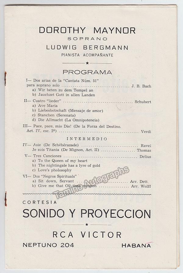 Maynor, Dorothy - Signed Program Havana 1951