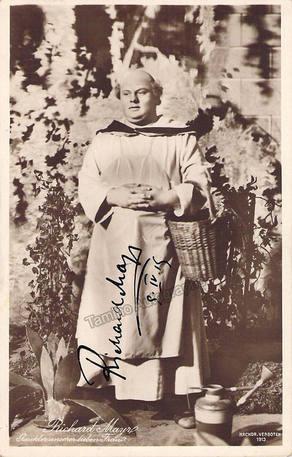 Austrian bass (1877-1935), signed photo postcard, shown in Le jongleur de Notre Dame (opera by Massenet), dated in 1915. Size is 3.5 x 5.25 inches, in excellent condition.