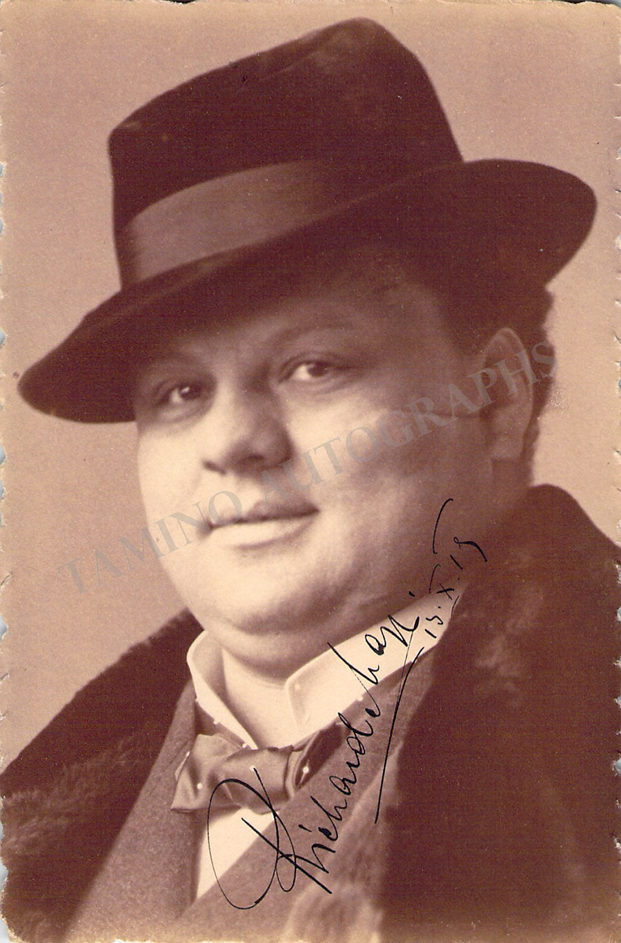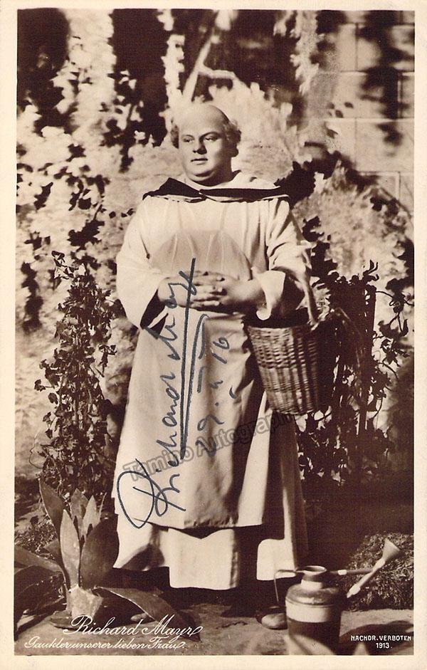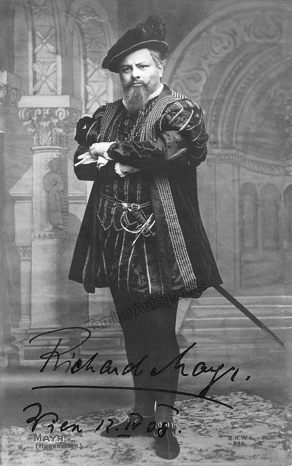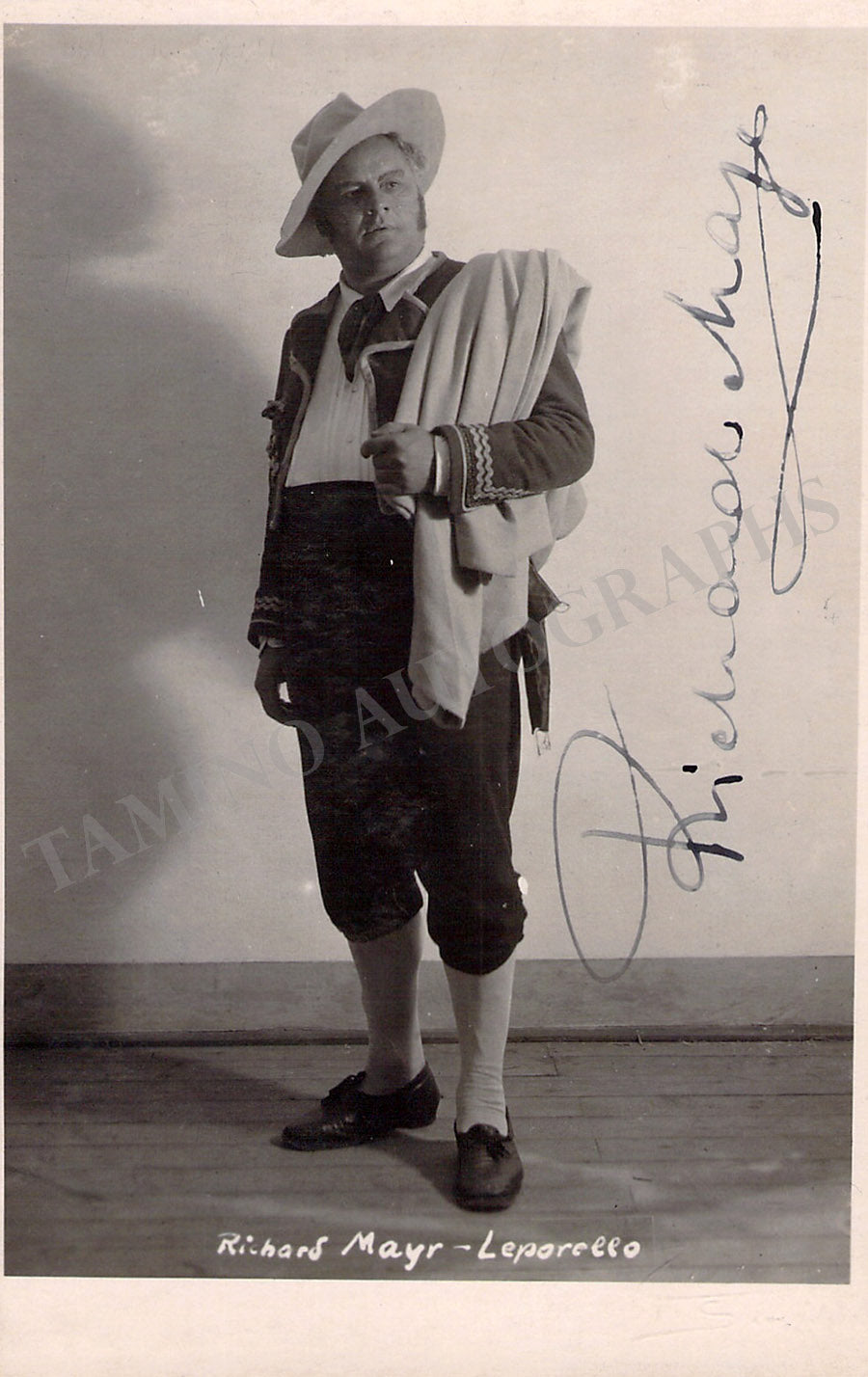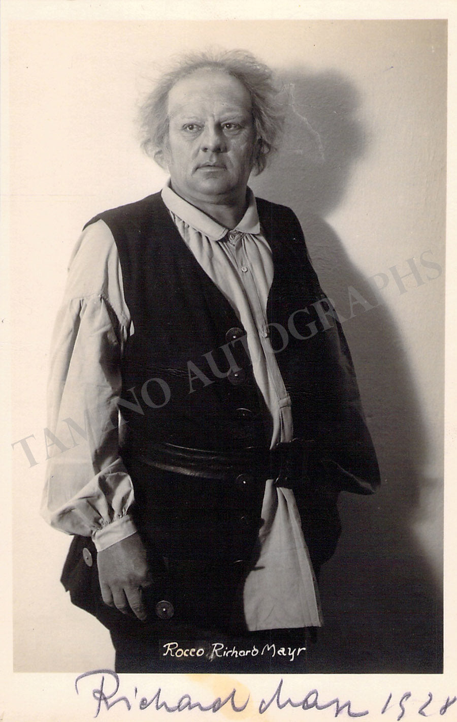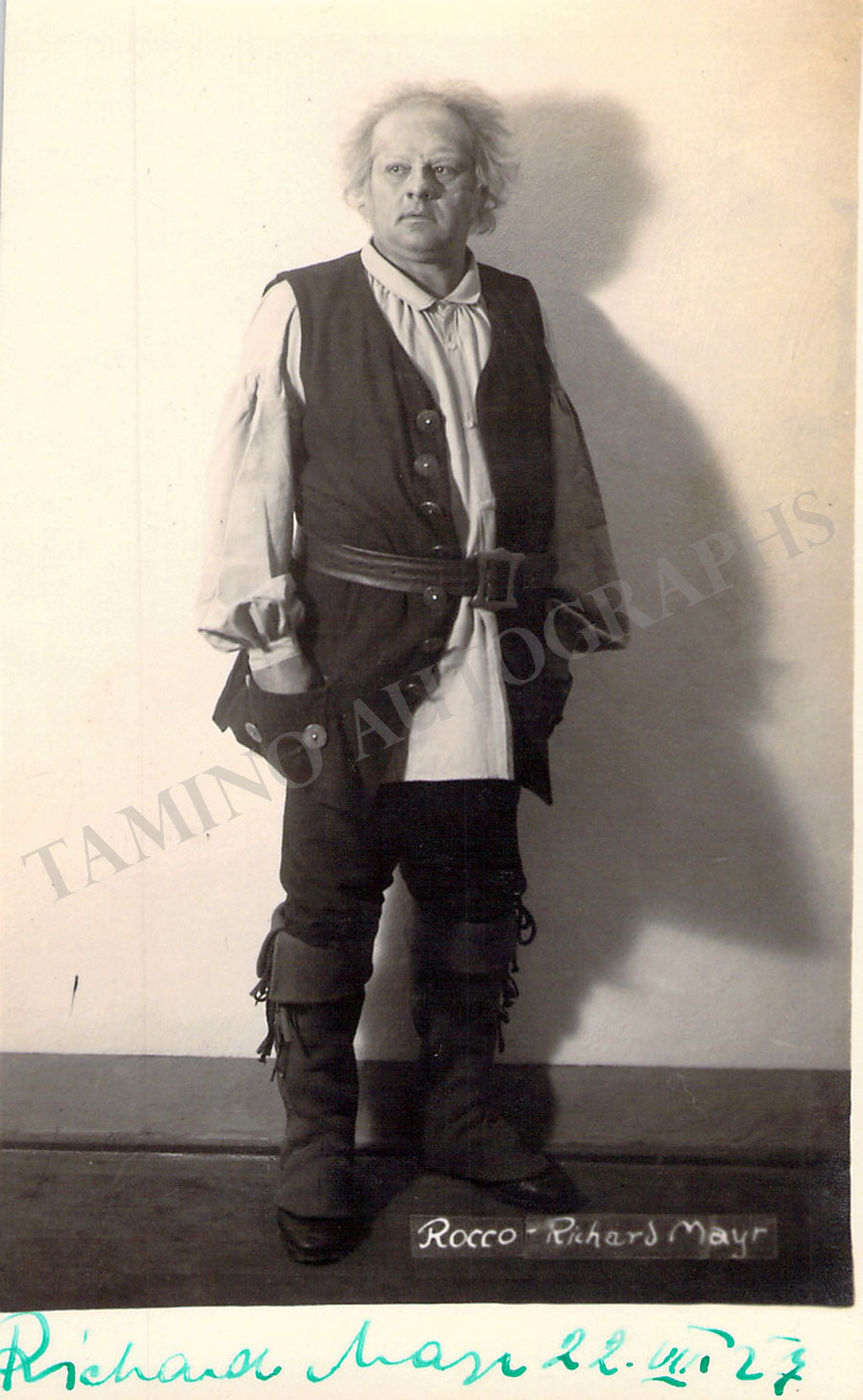 Signed postcard photograph, shown as Rocco in Beethoven's Fidelio, dated in 1929. Photo by Ellinger, Salzburg. Size is 3.25 x 5.25 inches, mounting traces on verso, otherwise in excellent condition.