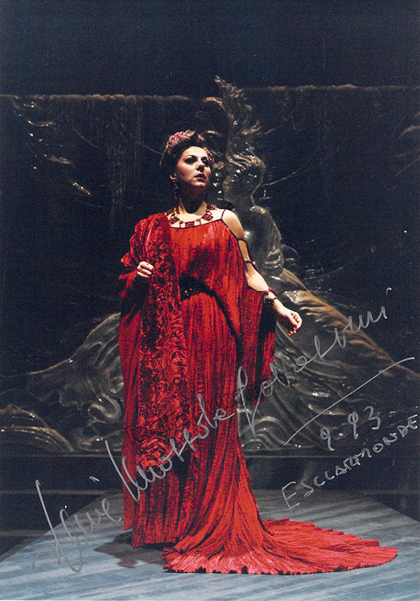 Italian soprano (b.1953), signed photograph, shown in the title role of Massenet's Esclaramonde, dated in 1993. Photo by Federico Allotta, Palermo. Size is 5 x 7 inches, in excellent condition.