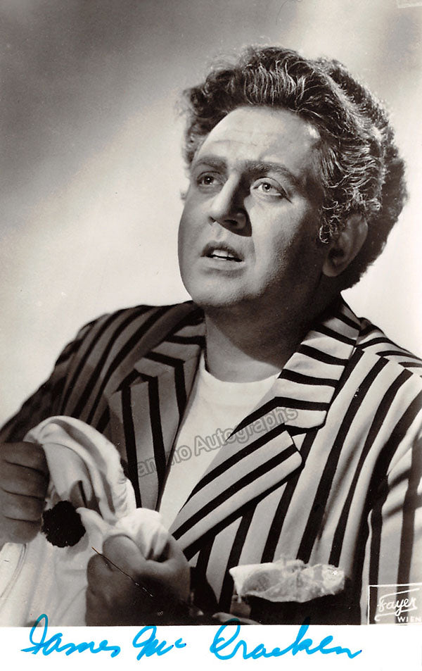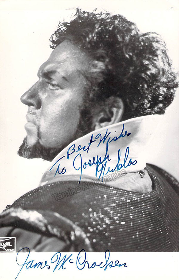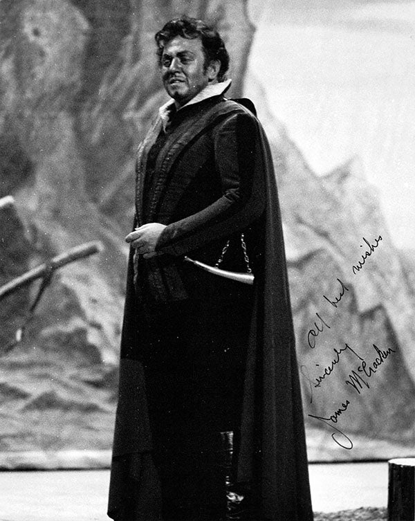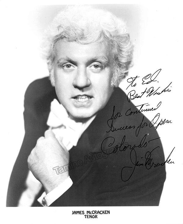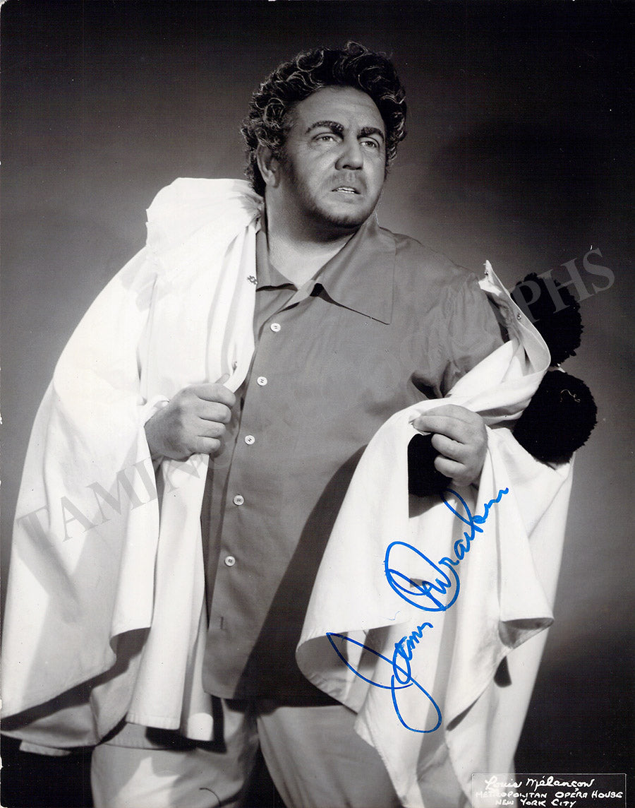 Beautiful black-and-white photograph signed by him with a short sentiment, shown as Canio in Leoncavallo's Pagliacci. Size is 3.5 x 5 inches, ink writing on verso probably by McCracken ('Sorry, no Don José pictures'), in excellent condition.