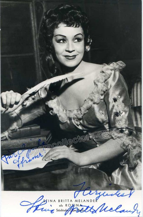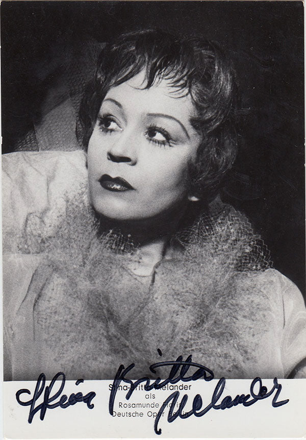 Signed photograph, shown in role in Boris Blachers opera ”Rosamunde Floris' at the Deutsche Opera, Berlin. Stamped on verso by photographer Ilse Buhs, Berlin. Size is 4 x 5.75 inches, in excellent condition.